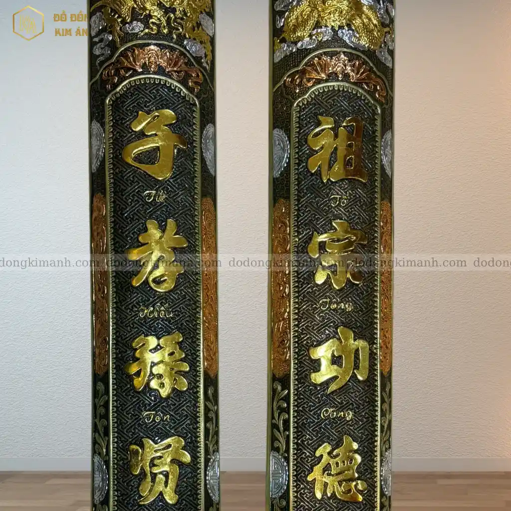 Hai bên cuốn thư là đôi câu đối, cũng là hai tấm bảng hình chữ nhật nhưng theo chiều dọc, treo đối xứng nhau. Câu đối thường thể hiện những lời răn dạy, ca ngợi tổ tiên hoặc cầu mong phúc lộc, thịnh vượng cho dòng tộc.