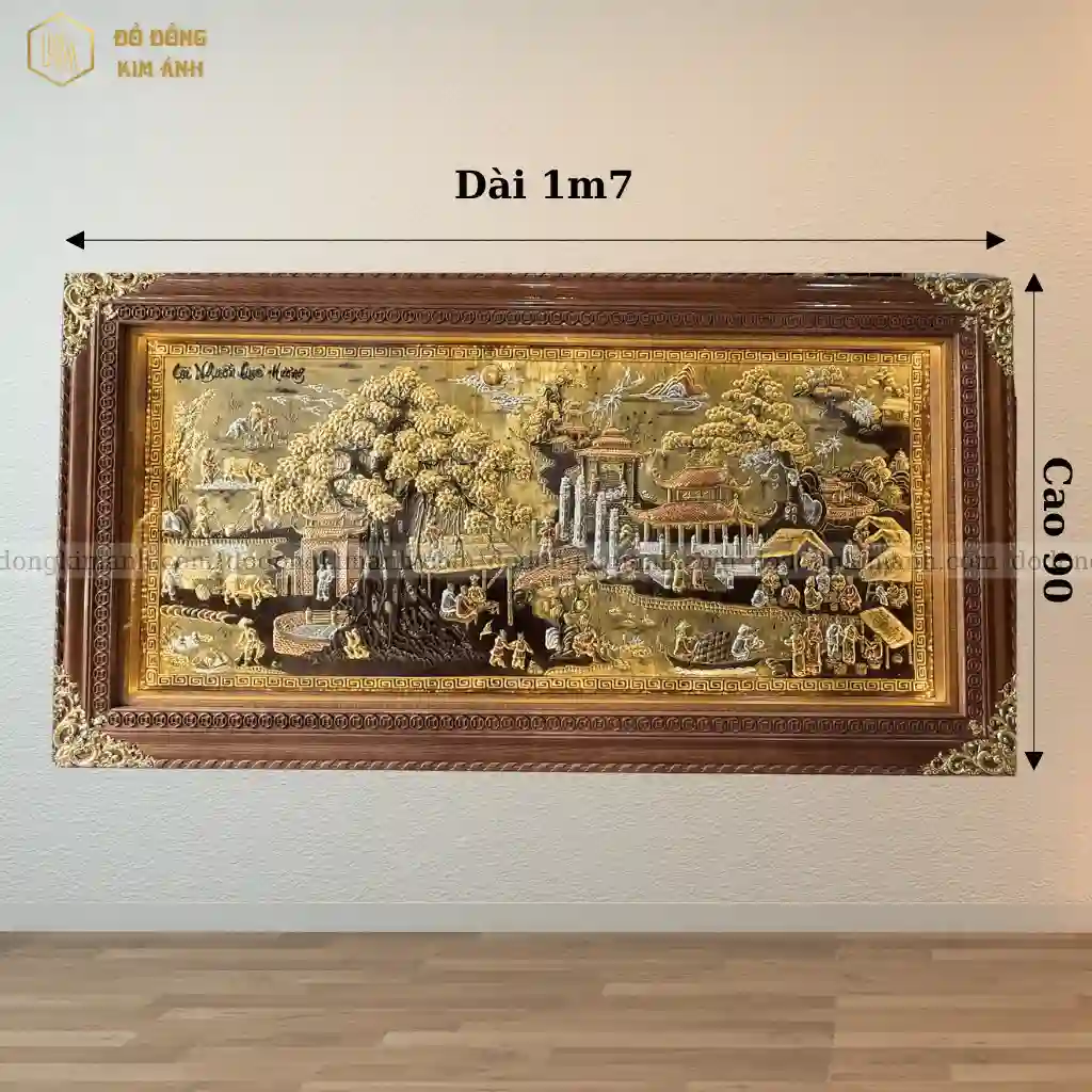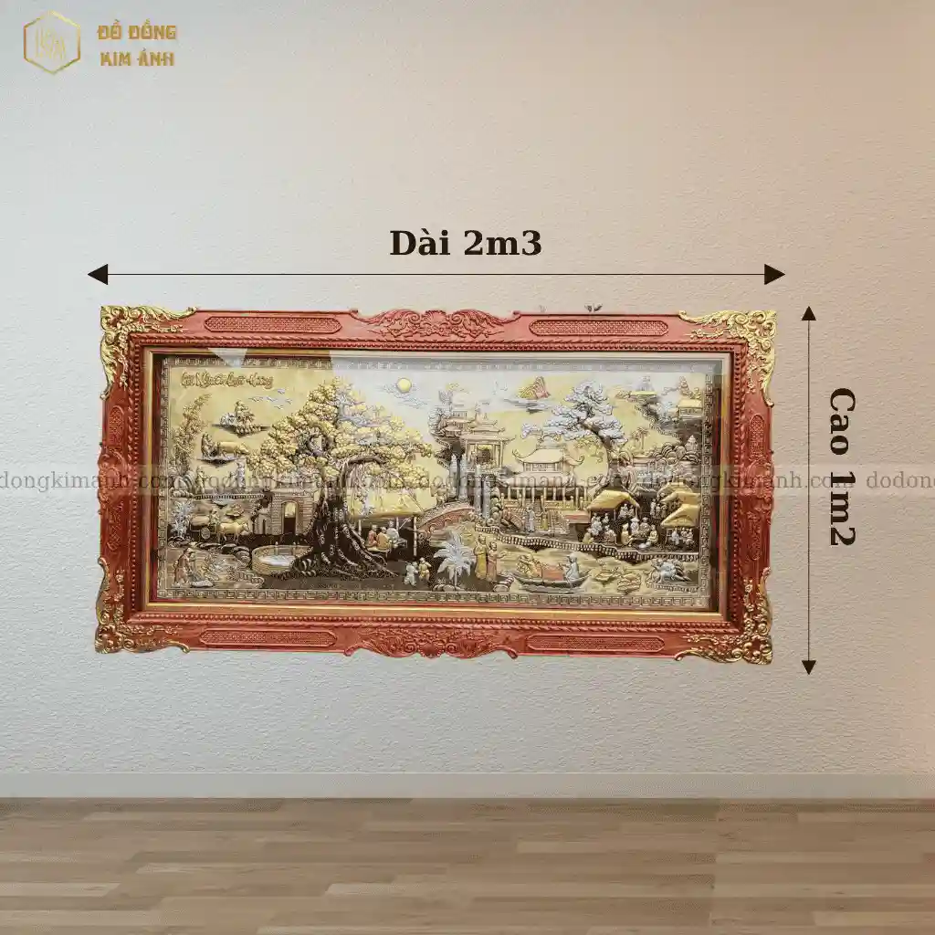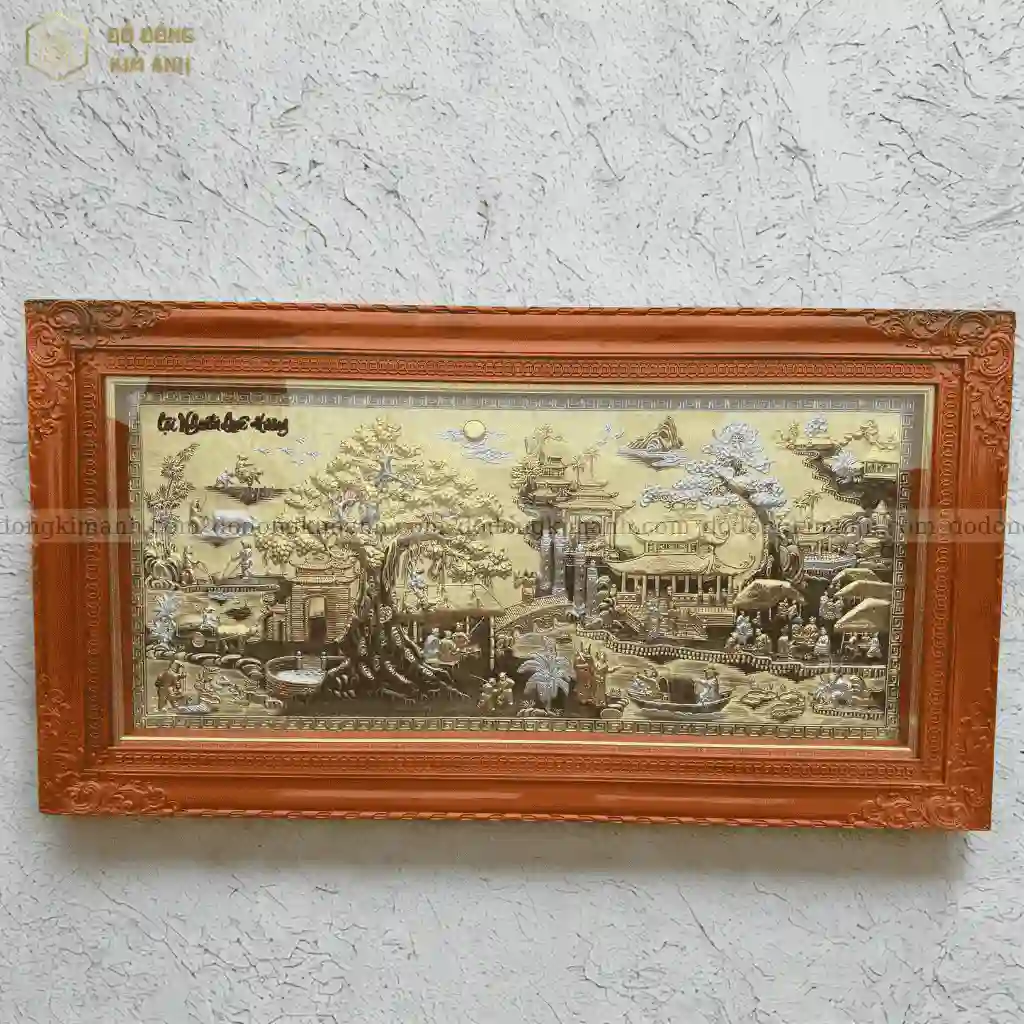 Tranh đồng quê bằng chất liệu đồng vàng cattut cao cấp loại 1 là một tác phẩm nghệ thuật không chỉ giàu tính thẩm mỹ mà còn chứa đựng nhiều tầng ý nghĩa sâu sắc. Mỗi chi tiết trong tranh đều gợi lại hình ảnh thân thuộc và bình dị của làng quê Việt Nam xưa – nơi lưu giữ những giá trị truyền thống ngàn đời.
